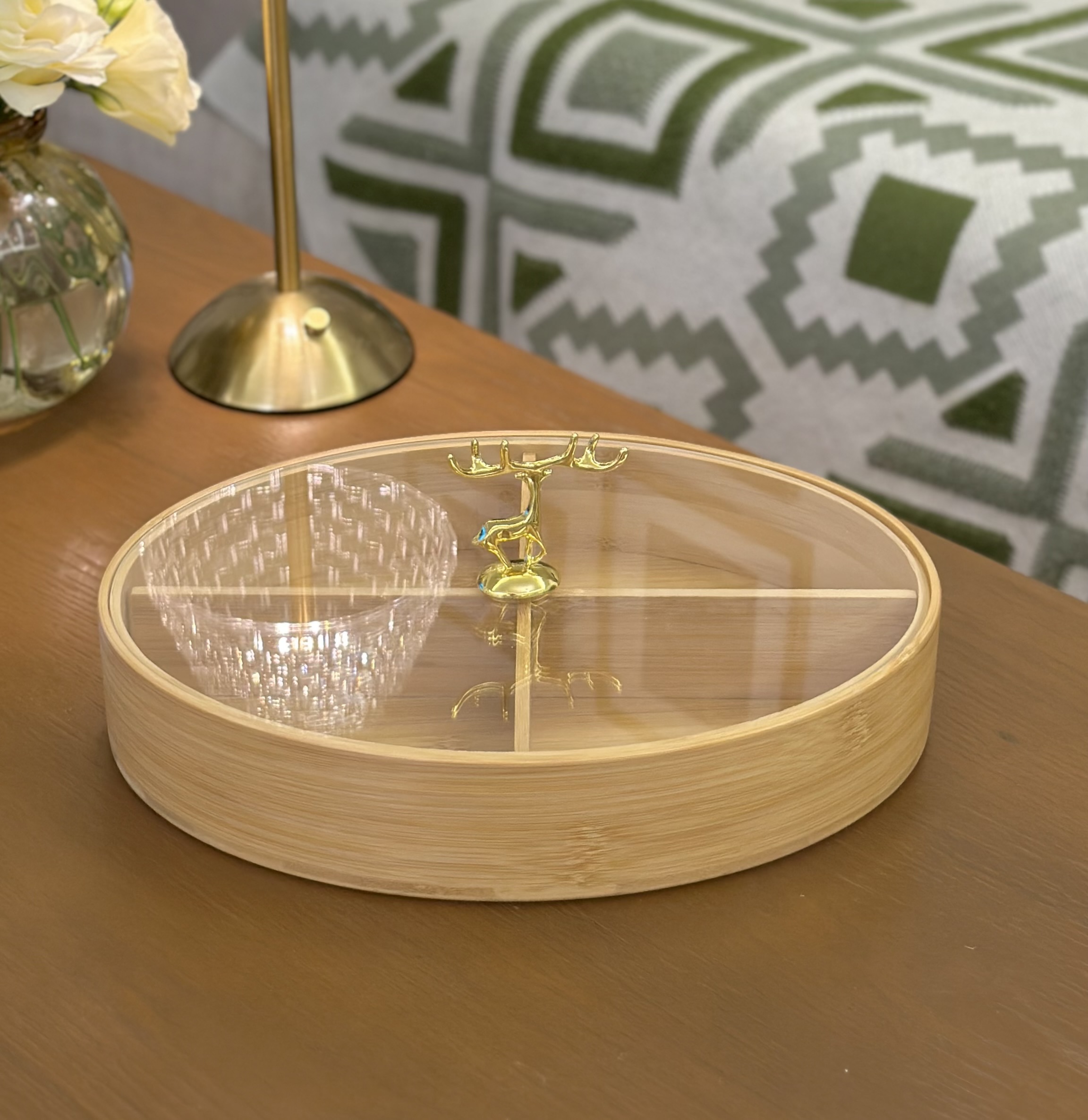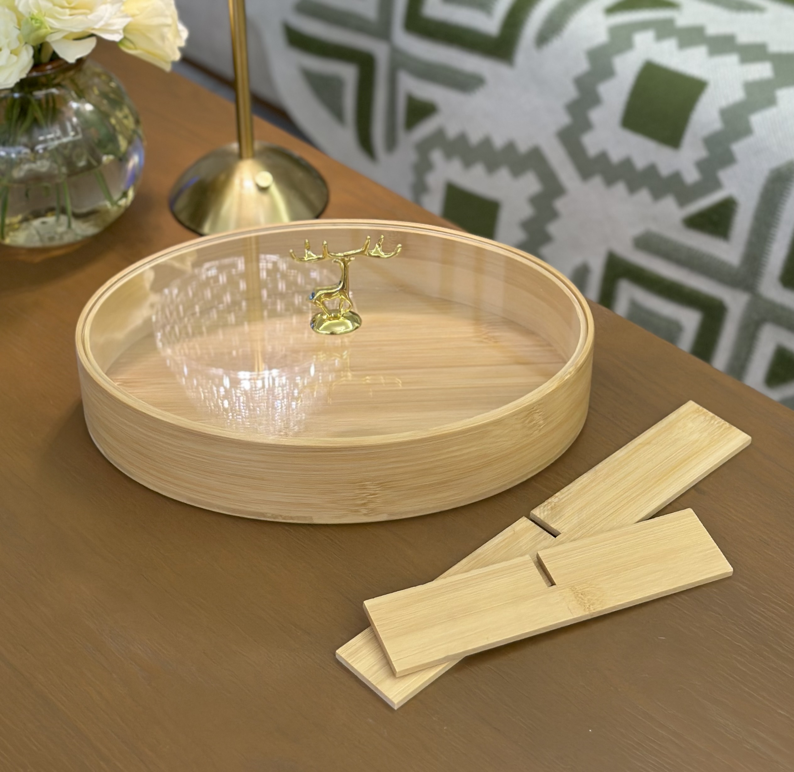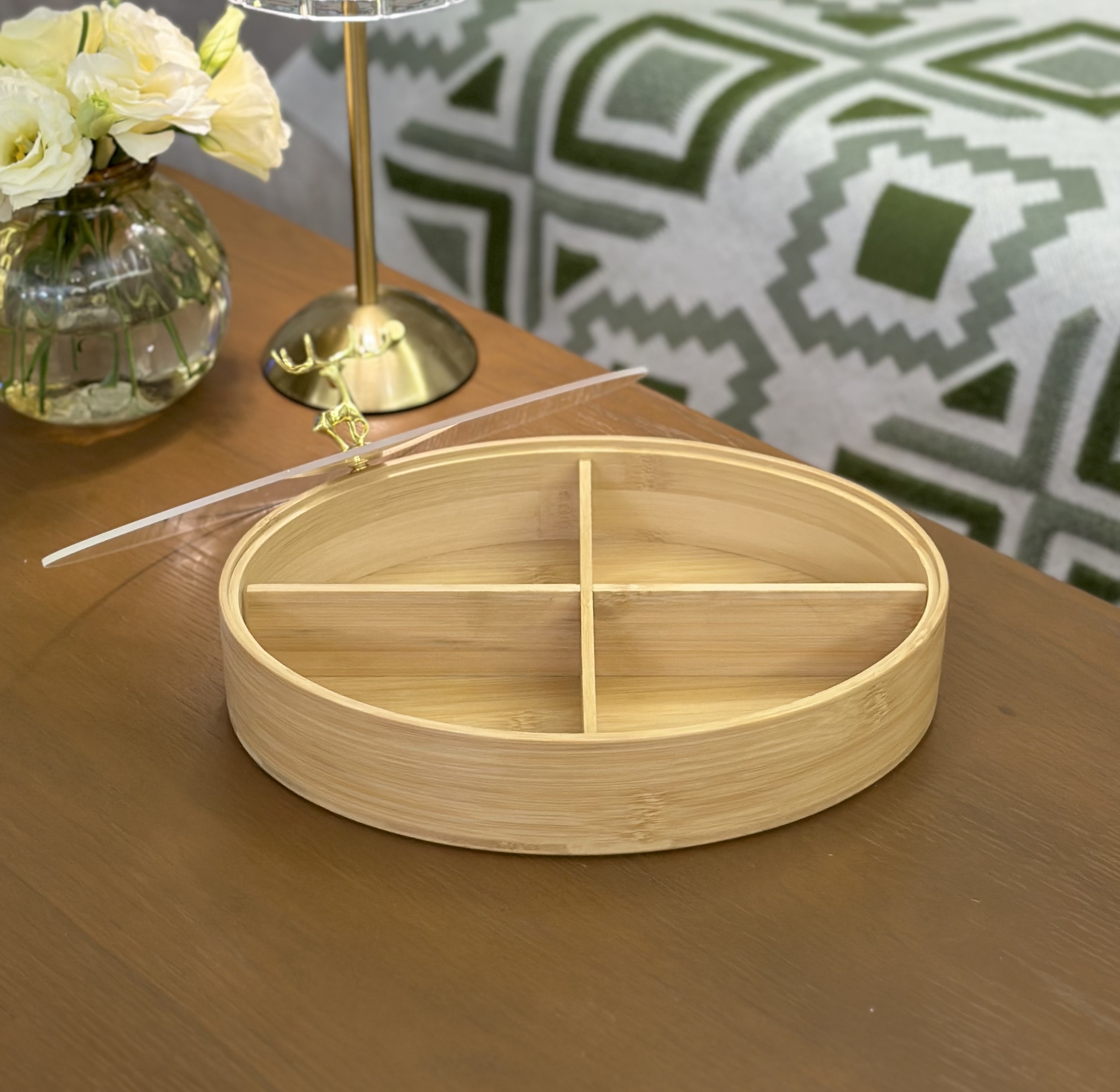 باکس تنقلات بامبو گرد، انتخابی شیک و کارآمد برای سرو تنقلات و پذیرایی از مهمانان! این باکس با طراحی زیبا و جنس بامبوی مرغوب، حس طبیعت را به منزلتان میآورد. مناسب برای چیدمان آجیل، خشکبار و شکلات، و ایدهآل برای میزهای مهمانی. با خرید این باکس، زیبایی و سلیقه را به مهمانیهای خود اضافه کنید!