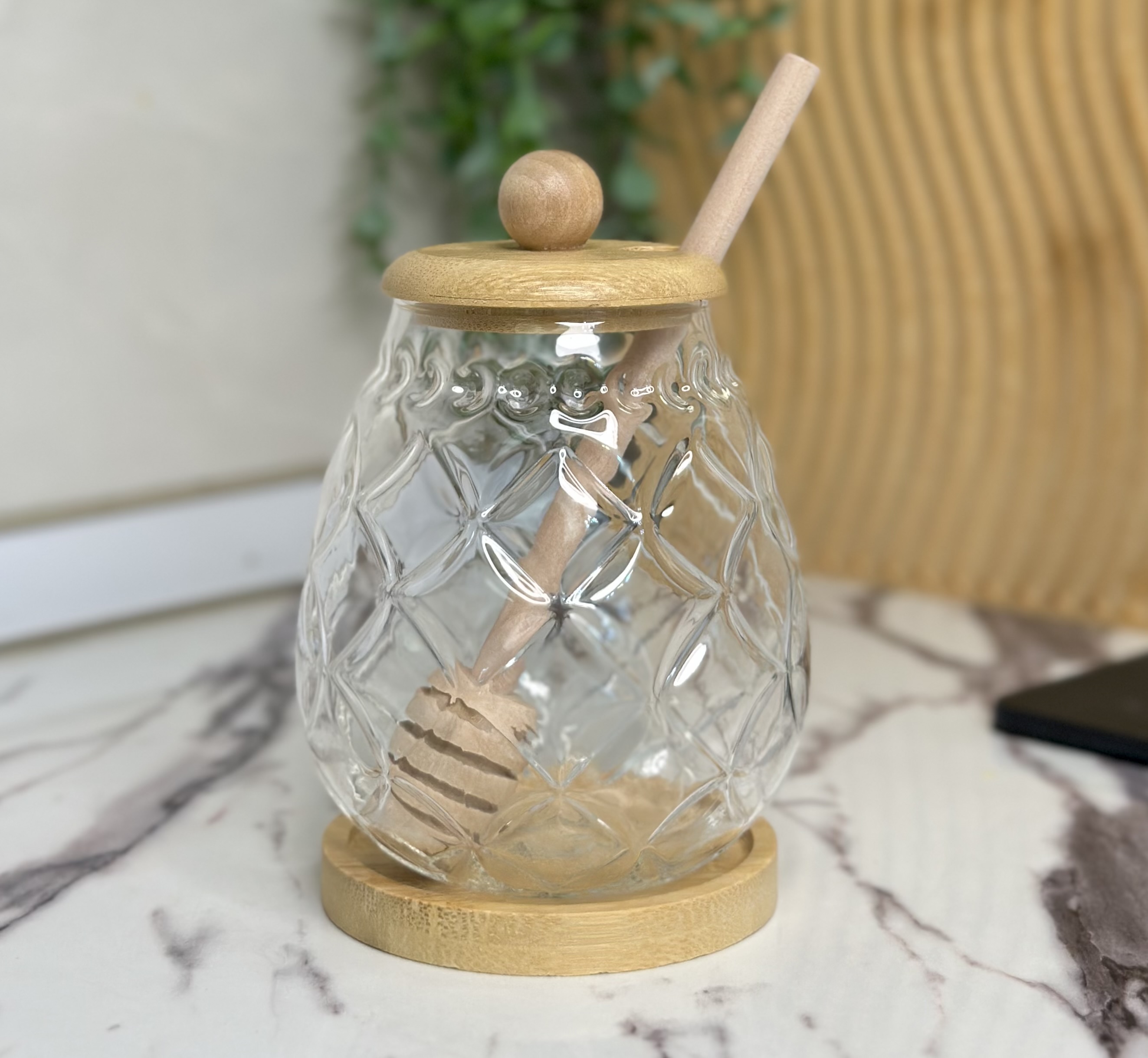 با عسل خوری پیرکس بامبو، تجربهای متفاوت و شیک از سرو عسل را به آشپزخانه خود بیاورید! این محصول با طراحی زیبا و مدرن، مقاومت پیرکس و زیبایی چوب بامبو، گزینهای ایدهآل برای صبحانههای دلنشین و میزهای پذیرایی شماست. افزودن این عسل خوری به سبد خریدتان، لذت مصرف عسل را دوچندان خواهد کرد!