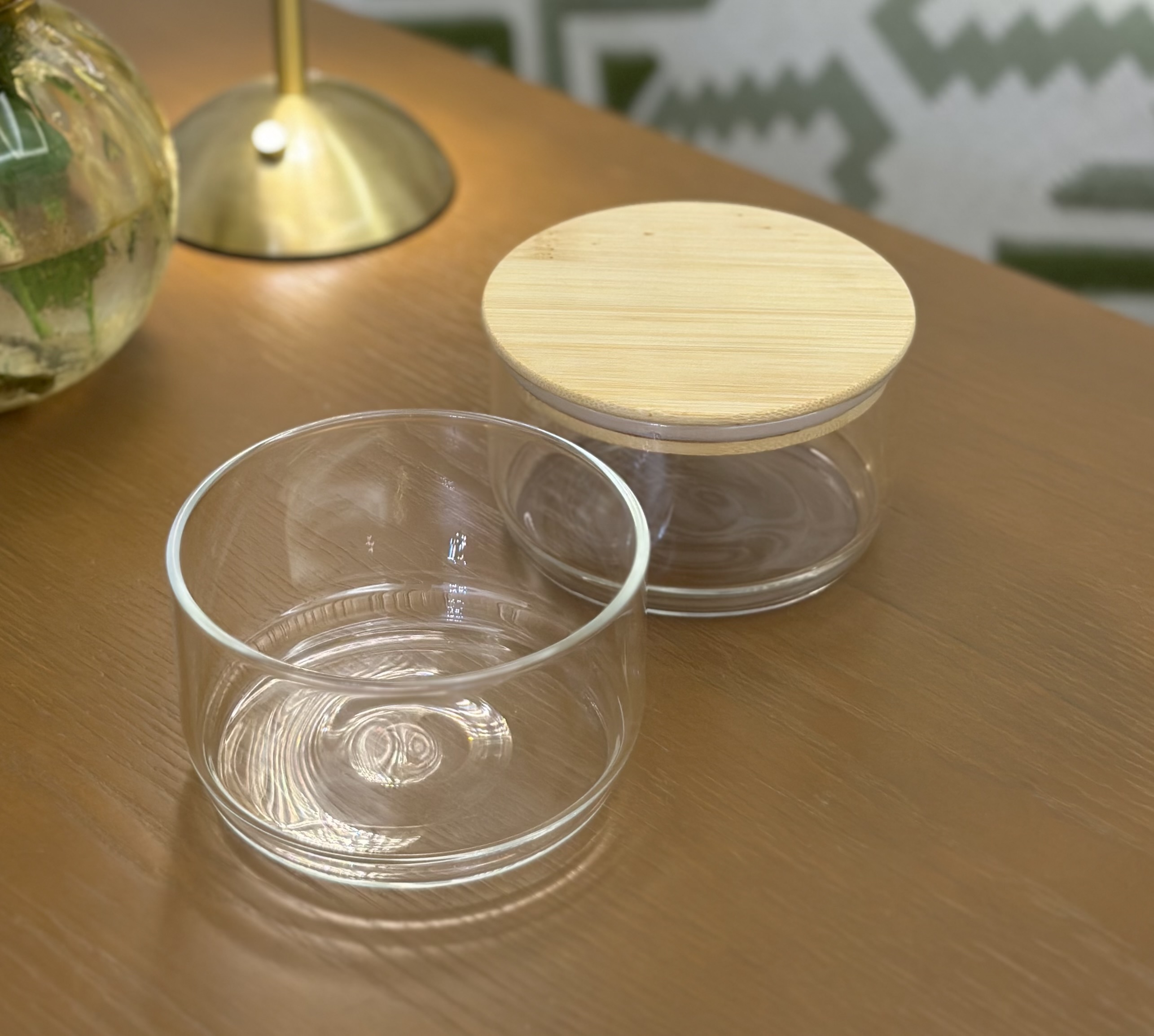دوعدد ظرف پیرکس به همراه یک درب بامبو واشردار
