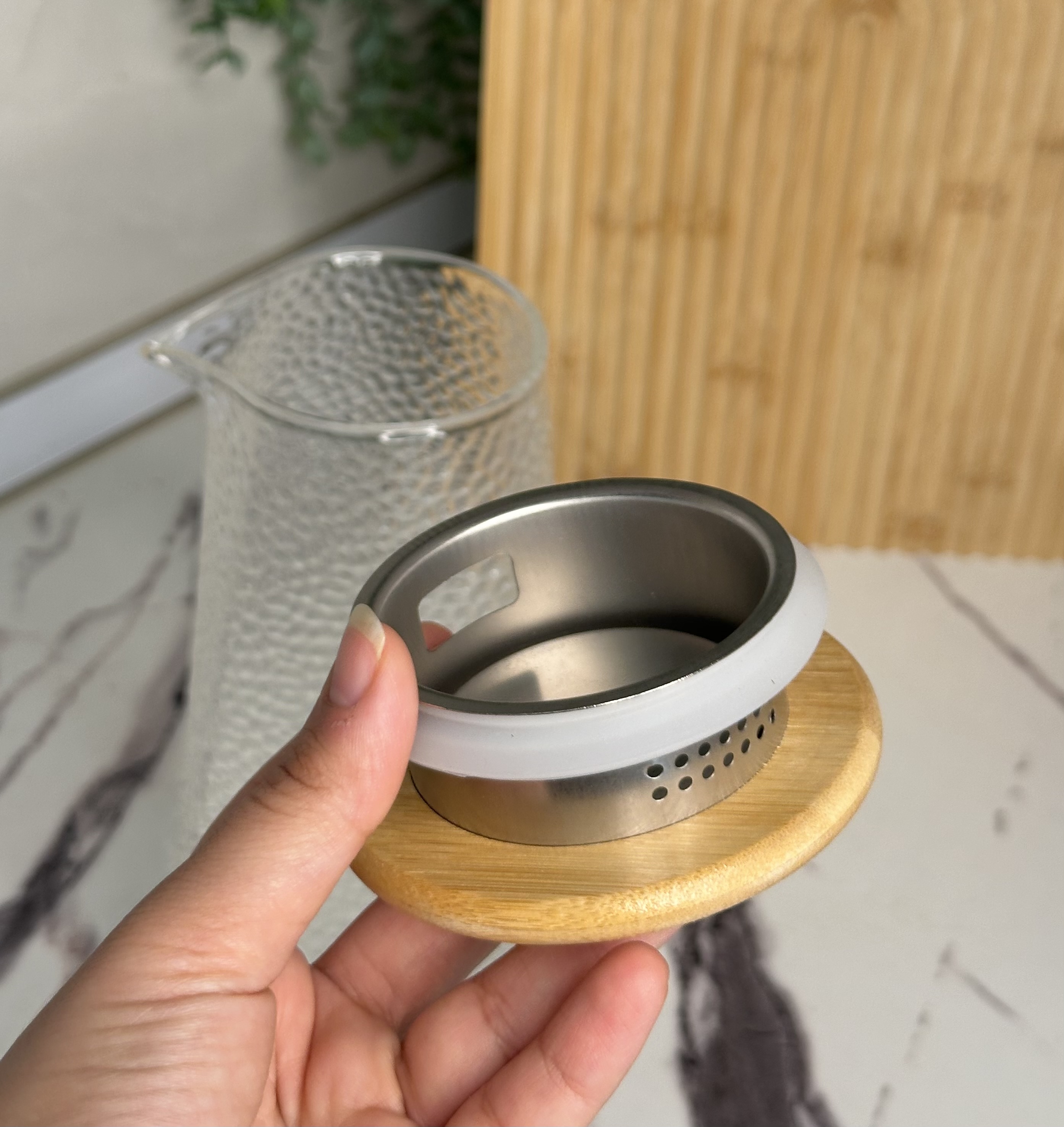 بدنه پیرکس و درب بامبو -زیر درب استیل فیلتردار